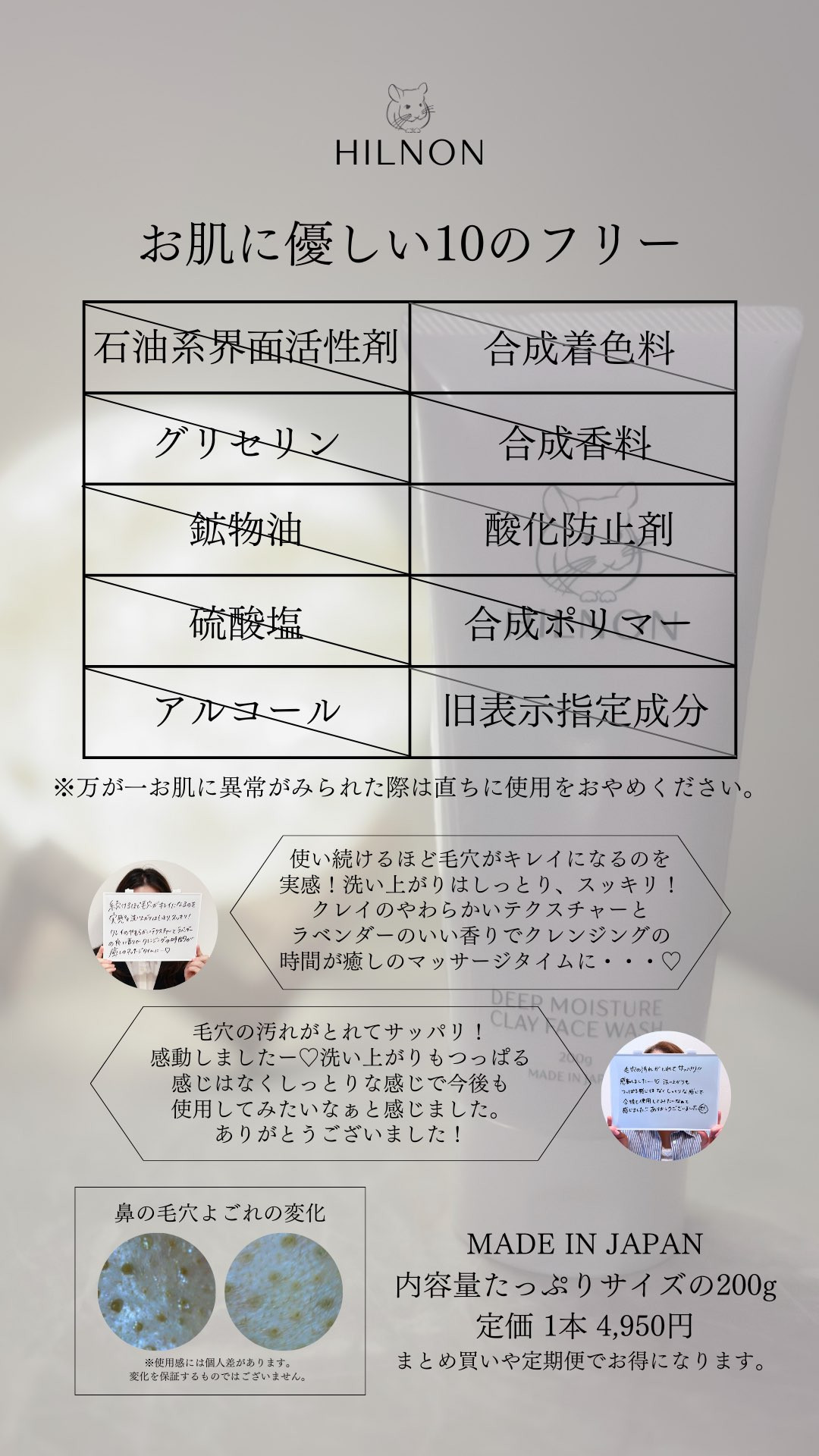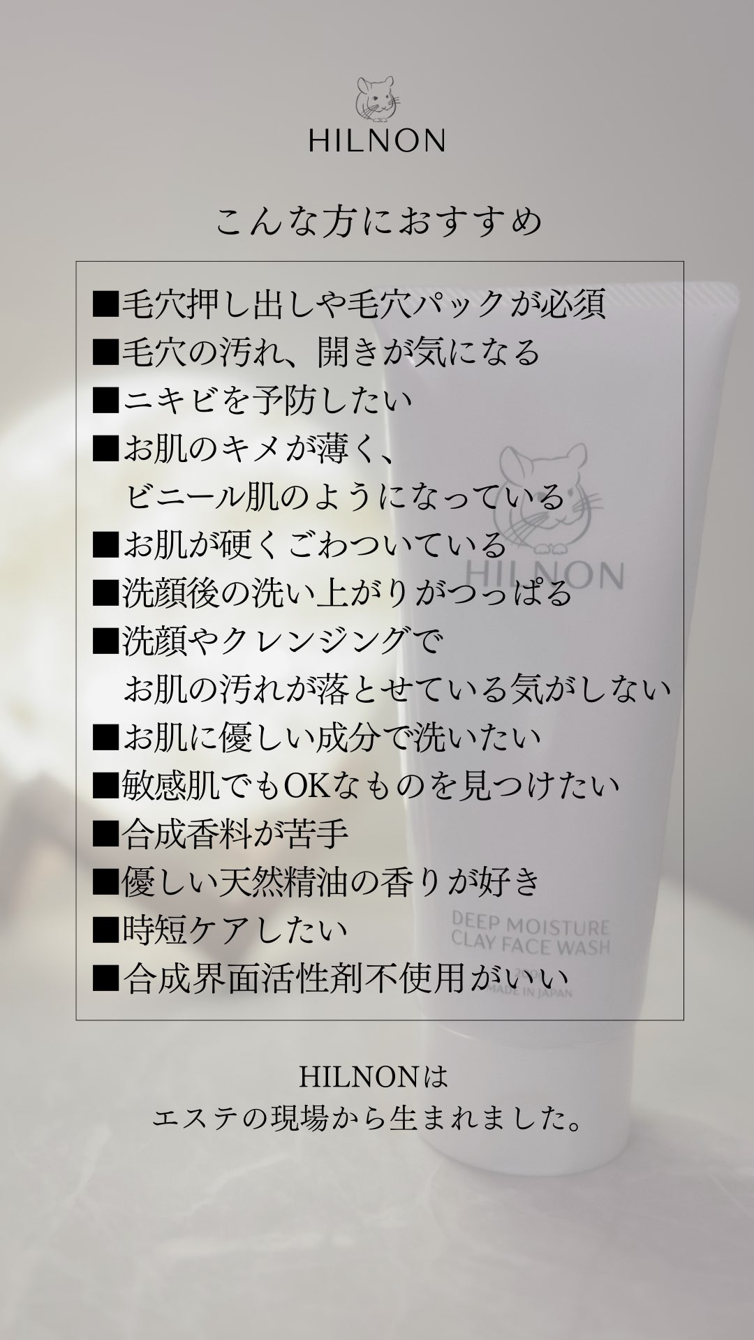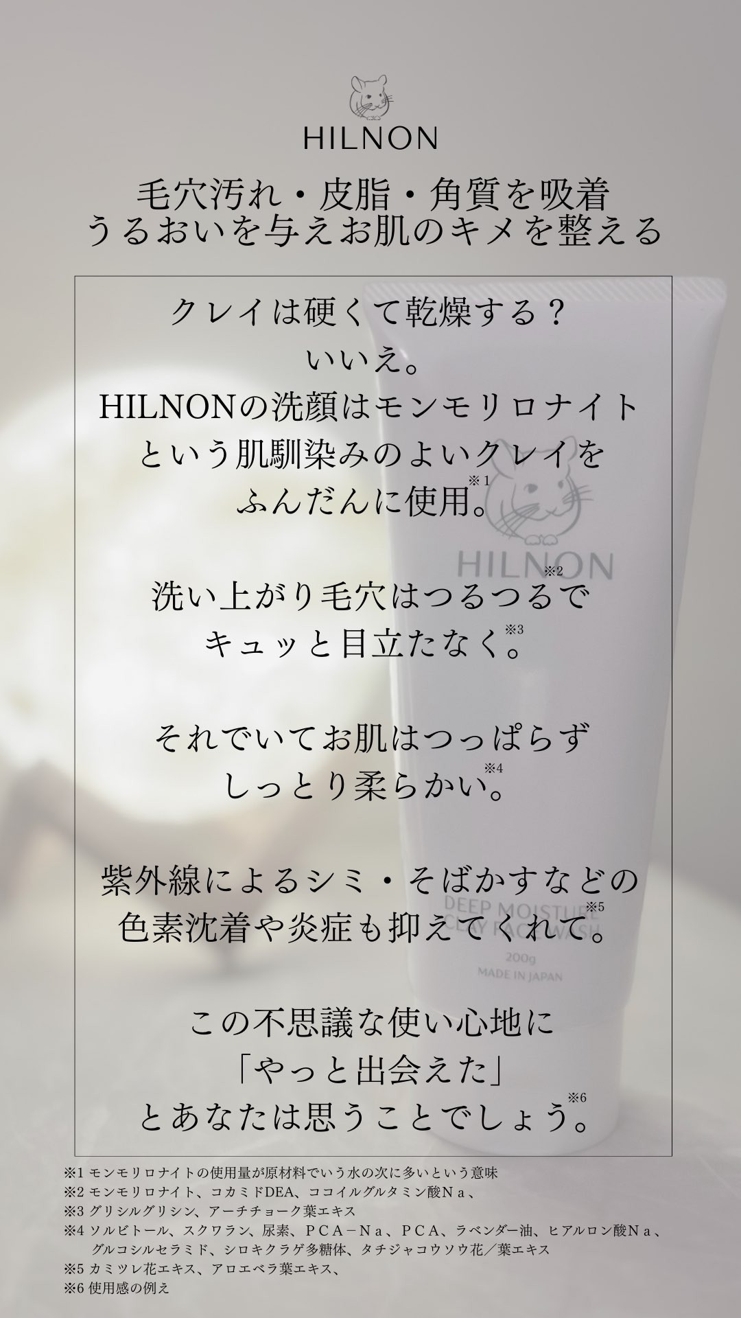 【HILNONディープモイスチャークレイフェイスウォッシュの特長】